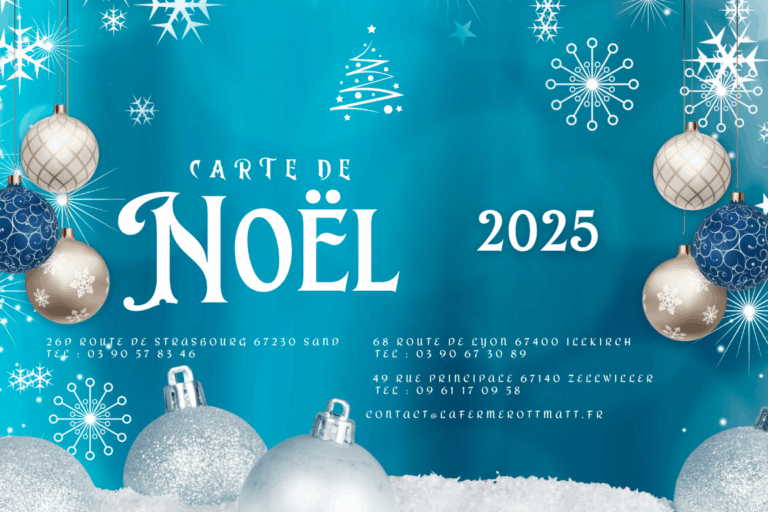 Carte de Noël 2025 et Nouvel an Chers clients, À l’approche des fêtes de fin d’année, toute l’équipe de la Ferme Rottmatt souhaite…